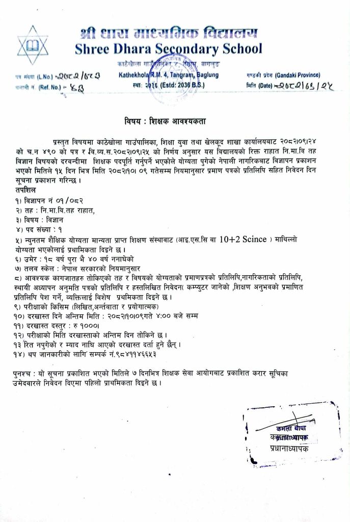शिक्षक आवश्यकता सम्बन्धित सूचना